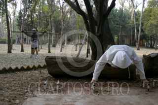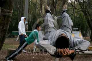 MÉXICO, D.F., 21ENERO2010.- El Bosque de Chapultepec, forma parte de áreas verdes y zonas ecológicas de la ciudad de México, cuenta con instalaciones para hacer ejercicio, desde tempranas horas este parque es visitado por los capitalinos de zonas residenciales principalmente que gustan del ejercicio, haciendo uso de gimnasios al aire libre, ofreciendo esparcimiento a personas de todas las edades. Sin embargo el Sistema Meteorológico Atmosférico, recomienda que el día de hoy, no realizar actividades físicas, debido a que la calidad de aire es regular y la radiación solar es alta. FOTO: GUADALUPE CARRILLO/CUARTOSCURO.COM