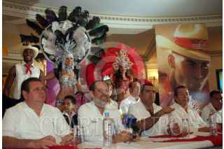 VERACRUZ, VERACRUZ, 21ENERO2010.- Esta tarde fue presentado de manera oficial el programa del carnaval de Veracruz, este año llamado, "Carnaval Bicentenario 2010". Con la alegría que caracteriza a los porteños durante la rueda de prensa no pudo faltar el baile y la rumba al lado de hermosas mujeres, corte real y autoridades locales. La fiesta del carnaval mas alegre del mundo se desarrollara del siete al diecinueve de febrero en la ciudad de Veracruz. FOTO: JOSÉ CANDELARIO/CUARTOSCURO.COM