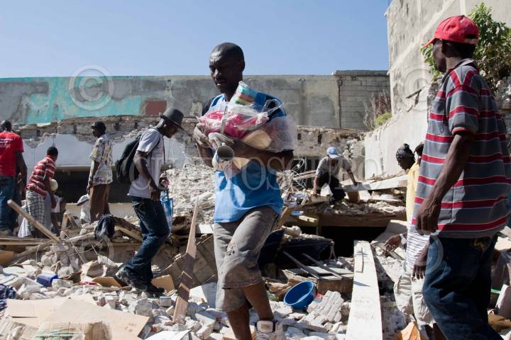 PUERTO PRÍNCIPE, HAITÍ, 21ENERO2010.- Haitianos continúan en la búsqueda de víveres entre los escombros de los edificios que se vinieron abajo luego de que un terremoto devastara a la mayor parte del país. FOTO: IVAN STEPHENS/CUARTOSCURO.COM