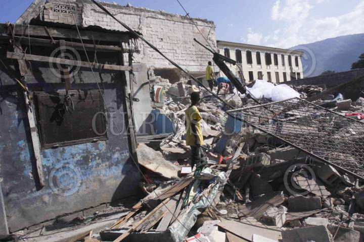 PUERTO PRÍNCIPE, HAITÍ, 21ENERO2010.- Haitianos continúan en la búsqueda de víveres entre los escombros de los edificios que se vinieron abajo luego de que un terremoto devastara a la mayor parte del país. FOTO: IVAN STEPHENS/CUARTOSCURO.COM