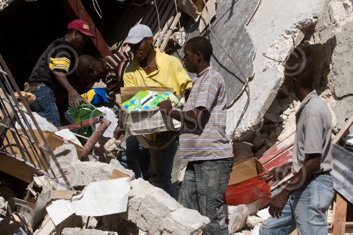 PUERTO PRÍNCIPE, HAITÍ, 21ENERO2010.- Haitianos continúan en la búsqueda de víveres entre los escombros de los edificios que se vinieron abajo luego de que un terremoto devastara a la mayor parte del país. FOTO: IVAN STEPHENS/CUARTOSCURO.COM