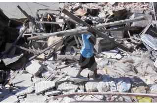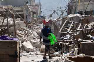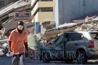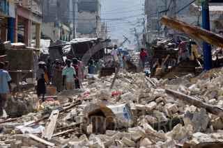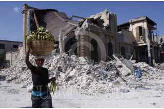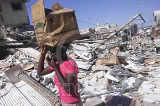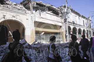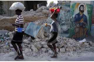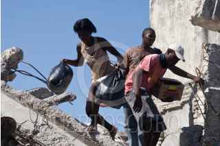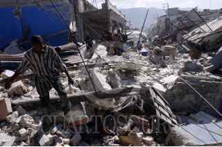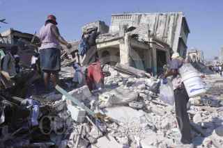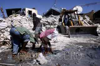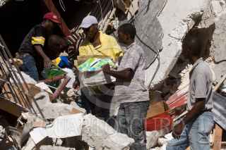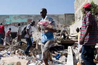PUERTO PRÍNCIPE, HAITÍ, 21ENERO2010.- Haitianos continúan en la búsqueda de víveres entre los escombros de los edificios que se vinieron abajo luego de que un terremoto devastara a la mayor parte del país. FOTO: IVAN STEPHENS/CUARTOSCURO.COM