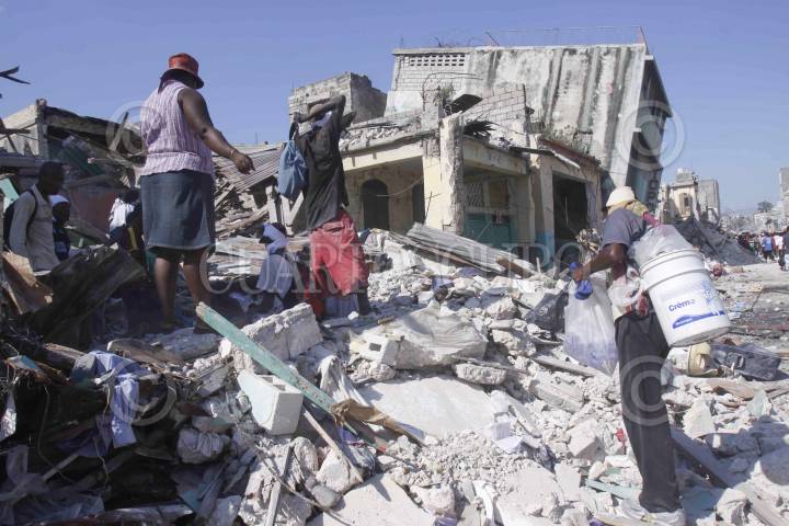 PUERTO PRÍNCIPE, HAITÍ, 21ENERO2010.- Haitianos continúan en la búsqueda de víveres entre los escombros de los edificios que se vinieron abajo luego de que un terremoto devastara a la mayor parte del país. FOTO: IVAN STEPHENS/CUARTOSCURO.COM