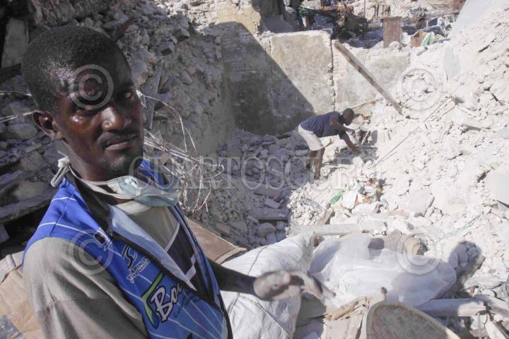 PUERTO PRÍNCIPE, HAITÍ, 21ENERO2010.- Haitianos continúan en la búsqueda de víveres entre los escombros de los edificios que se vinieron abajo luego de que un terremoto devastara a la mayor parte del país. FOTO: IVAN STEPHENS/CUARTOSCURO.COM