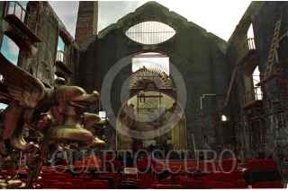 Parte de la decoraión del teatro que aparecera en la película de "Zapata",diriguda por Alfonso Araú, en las locaciones de la Hacienda de Coahuixtla. FOTO: Sandra Perdomo/CUARTOSCURO.COM