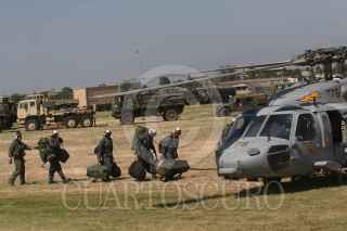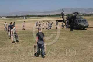 PUERTO PRÍNCIPE, HAITÍ, 22ENERO2010.- Helicópteros de la Marina de Estados Unidos reparten agua y comida en algunos campamentos de refugiados en Puerto Príncipe. FOTO: ISAAC ESQUIVEL/CUARTOSCURO.COM