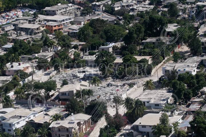 PUERTO PRÍNCIPE, HAITÍ, 22ENERO2010.- Vista aérea de algunas zonas derumbadas durante el terremoto del pasado 12 de enero, el cual devastó Puerto Príncipe y otras zonas de Haití. FOTO: ISAAC ESQUIVEL/CUARTOSCURO.COM