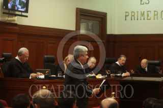 MÉXICO, D.F., 22ENERO2010.- Francisco Ramírez Acuña Presidente de la Mesa Directiva de la Cámara de Diputados, durante su participación el la Suprema Corte de Justicia donde se realizó la Audiencia Pública en relación con los juicios de amparo promovidos contra la ley del impuesto empresarial a la tasa única (IETU). FOTO: SÁSHENKA GUTIÉRREZ/CUARTOSCURO.COM