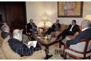 MÉXICO D.F., 22ENERO2010.- El presidente Felipe Calderón se reunio hoy en la residencia oficial de Los Pinos con los ex presidentes de España, Felipe Gonzalez; de Chile, Ricardo Lagos; de Uruguay, Julio María Sanguinetti; de Panama, Martín Torrijos; y el empresario Carlos Slim Helu. FOTO: IMPERIO RESENDIZ/CUARTOSCURO.COM