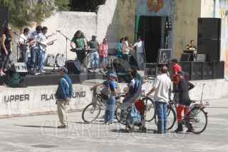 MÉXICO D.F., 24ENERO2010.- Vecinos de la colonia Condesa audieron al Parque México donde se realizó el Festival artístico Querida Haití, Haïti Chérie donde se presentaron grupos de rock, todo con el fin de recolectar agua embotellada, alimentos enlatados, aceite, azúcar, frijol, arroz, lentejas y otros para hacerselos llegar al pueblo Haitiano. FOTO: SÁSHENKA GUTIÉRREZ/CUARTOSCURO.COM
