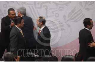 MÉXICO D.F., 25ENERO2010.- Gustavo Maderoconversa con Carlos Navarrete presidente de la Mesa Directiva del Senado de la República, mientras los senadores del PRI Manlio Fabio Beltrones se despide de Francisco Ramírez Acuña al término del seminario Análisis para la Reforma Política, organizado por el Instituto Belisario Domínguez, que presidio el senador del PRI Manlio Fabio Beltrones. FOTO: SÁSHENKA GUTIÉRREZ/CUARTOSCURO.COM