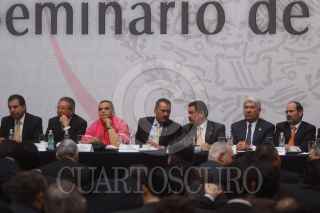 MÉXICO D.F., 25ENERO2010.- Beatriz Paredes presidenta nacional del PRI, Los senadores Manlio Fabio Beltrones, Carlos Navarrete Presidente de la Mesa Directiva Senado de la República, Francisco Ramírez Acuña Presidente de la mesa Directiva de la Cámara de Diputados durante el seminario Análisis para la Reforma Política, organizado por el Instituto Belisario Domínguez, que presidio el senador del PRI Manlio Fabio Beltrones. FOTO: SÁSHENKA GUTIÉRREZ/CUARTOSCURO.COM