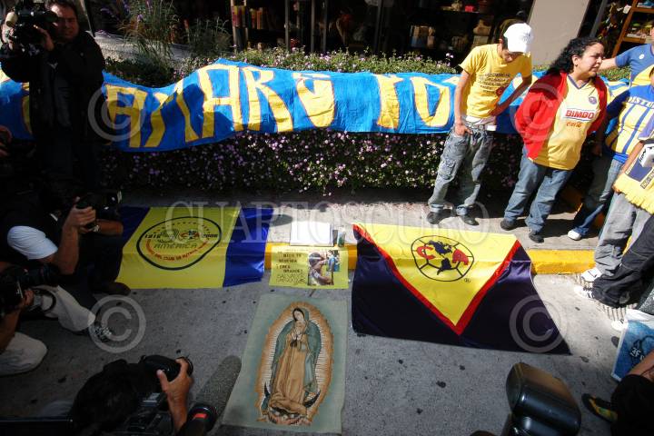 MÉXICO, D.F., 25ENERO2010.- Aficionados al club América, montaron una guardia a las afueras del hospital en el que es atendido, Salvador Cabañas, quien recibiera un impacto de bala en la cabeza en el interior de un bar de la zona de Insurgentes sur. FOTO: LUIS CARBAYO/CUARTOSCURO.COM