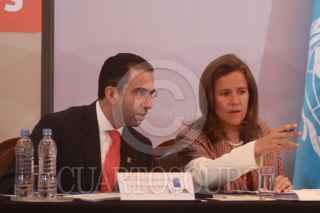 MÉXICO, D.F., 25ENER02010.- Margarita Zavala Primera Dama conversa con el Secretario del Trabajo Javier Lozano durante la presentación del Informe Trabajo y Familia: Hacia nuevas formas de conciliación con corresponsabilidad social. FOTO: SÁSHENKA GUTIÉRREZ/CUARTOSCURO.COM