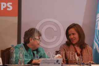 MÉXICO, D.F., 25ENER02010.- Margarita Zavala Primera Dama, conversa con la presidenta del INMUJERES, Rocío García Gaytán durante la presentación del Informe Trabajo y Familia: Hacia nuevas formas de conciliación con corresponsabilidad social. FOTO: SÁSHENKA GUTIÉRREZ/CUARTOSCURO.COM