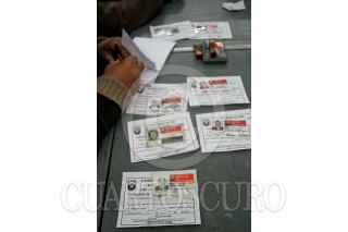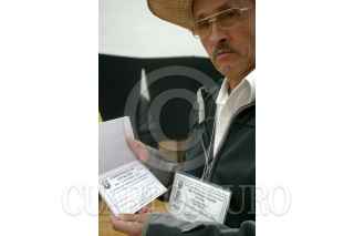 MÉXICO D.F., 26ENERO2010.- Un miembro del Sindicato Mexicano de Electricistas (SME), muestra una constancia de votación. Más de 22 mil jubilados del SME, elegirán a la Comisión de Trabajos del 25 al 29 de enero. Desde hoy muy temprano decenas de miles de ex empleados empezaron a sufragar en las instalaciones del Sindicato Mexicano Electricista en la colonia Tabacalera. FOTO: MISAEL VALTIERRA/CUARTOSCURO.COM