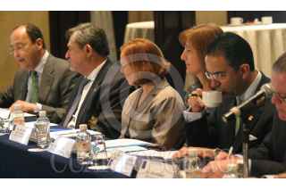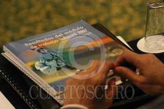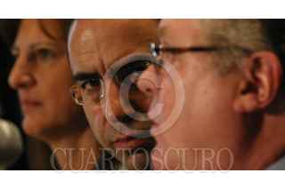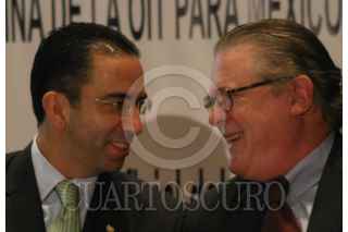 MÉXICO D.F., 26ENERO2010.- Javier Lozano Alarcon, Secretario del Trabajo y Prevención Social, y Jean Maninat (director regional de la Organización Internacional del Trabajo, OIT), charlan durante su ponencia en la presentación del proyecto OIT/IPEC "Contribución a la prevención y eliminación de la explotación sexual comercial infantil y protección de las víctimas en México". Alrededor de 16 mil niños, niñas y adolescentes son utilizados en prácticas de prostitución, pornografía, turismo sexual, y tráfico para actividades sexuales, además que 3.2 millones se encuentra trabajando, según un estudio realizado por el Sistema Nacional para el Desarrollo Integral de la Familia (DIF). FOTO: MISAEL VALTIERRA/CUARTOSCURO.COM