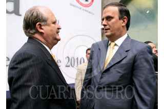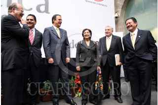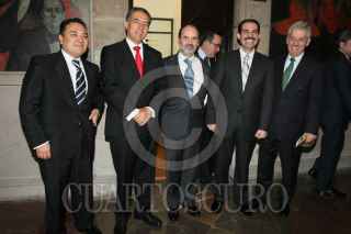 MÉXICO D.F., 26ENERO2010.- Marco Antonio Adame Castillo, gobernador de Morelos; Gustavo Madero Muñoz, presidente de la Junta de Coordinación Política del Senado de la República Guillermo Padrés Elías, Gobernador de Sonora durante su asistencia a la Reforma Política, Seminario de Análisis. FOTO: CUARTOSACURO.COM