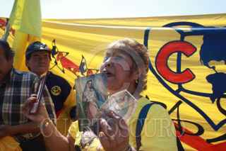 MÉXICO D.F., 26ENERO2010.- Decenas de aficionados de las águilas del América acudieron al Estadio Azteca donde se oficio una misa para pedir por la salud del futbolista Paraguayo Salvador Cabañas quién fué herido de bala en un Bar al sur de la ciudad de México. FOTO: SÁSHENKA GUTIÉRREZ/CUARTOSCURO.COM