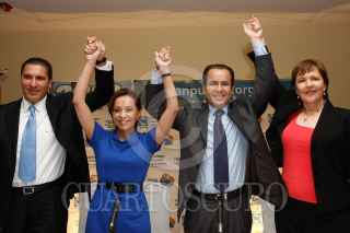 ASPUEBLA, PUEBLA, 26ENERO2010.- Rafael Moreno Valle, aspirante a la gubernatura de Puebla; Josefina Vázquez Mota, coordinadora del grupo parlamentario del PAN; César Nava Vázquez, lider nacional del PAN; Ana Teresa Aranda, precandidata al gobierno estatal, oficiaron una rueda de prensa para esclarecer los procesos internos para la elección de candidato al gobierno estatal. FOTO: FRANCISCO GUASCO/CUARTOSCURO.COM