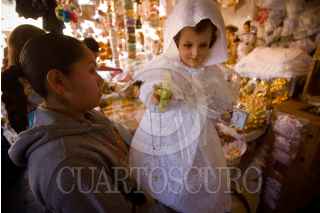 QUERÉTARO, QUERÉTARO, 26ENERO2010.- Gran variedad de vestidos y accesorios para los "Niños Dios" está ya a la venta en los mercados, incluso por catálogo; a unos dias de celebrarce el día de la candelaria (2 de febrero), donde se presentan y bendicen en las iglesias al niño del llamado "Nacimiento", de acuerdo a la tradición católica mexicana. FOTO: DEMIAN CHÁVEZ/CUARTOSCURO.COM