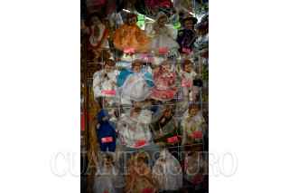 QUERÉTARO, QUERÉTARO, 26ENERO2010.- Gran variedad de vestidos y accesorios para los "Niños Dios" está ya a la venta en los mercados, incluso por catálogo; a unos dias de celebrarce el día de la candelaria (2 de febrero), donde se presentan y bendicen en las iglesias al niño del llamado "Nacimiento", de acuerdo a la tradición católica mexicana. FOTO: DEMIAN CHÁVEZ/CUARTOSCURO.COM