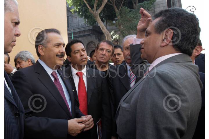 MÉXICO D.F., 26ENERO2010.- Francisco Labastida Ochoa y Fidel Herrera Beltrán, gobernador del estado de Veracruz, se reunieron esta mañana antes de dirigirse al seminario de la reforma política en la sede del Senado. FOTO: CUARTOSCURO.COM