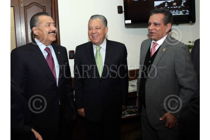 MÉXICO D.F., 26ENERO2010.- Francisco Labastida Ochoa y Fidel Herrera Beltrán, gobernador del estado de Veracruz, se reunieron esta mañana antes de dirigirse al seminario de la reforma política en la sede del Senado. FOTO: CUARTOSCURO.COM