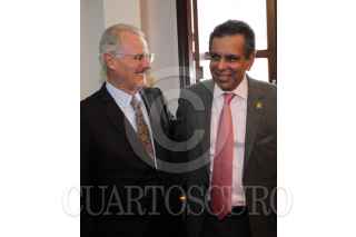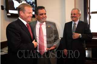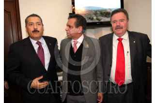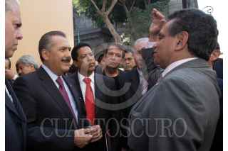 MÉXICO D.F., 26ENERO2010.- Francisco Labastida Ochoa y Fidel Herrera Beltrán, gobernador del estado de Veracruz, se reunieron esta mañana antes de dirigirse al seminario de la reforma política en la sede del Senado. FOTO: CUARTOSCURO.COM