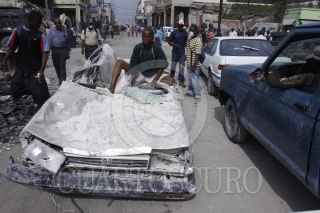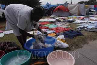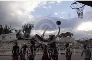 PUERTO PRINCIPE, HAITÍ, 27ENERO2010.- Haitianos juegan baloncesto, la vida cotidiana comienza a tomar su curso normal. FOTO: IVÁN STEPHENS/CUARTOSCURO.COM