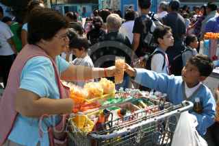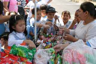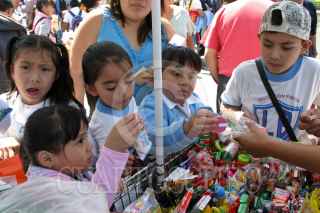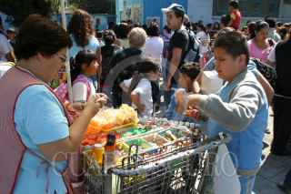 MÉXICO, D.F., 27 ENERO 2010.- Niños de primaria compran dulces, papitas y demás alimentos chatarra a la salida de clases; el consumo de este tipo de alimentos fomenta el sobrepeso y la obesidad que padecen el 70 por ciento de los adultos y el 30 por ciento de los niños en México que son alrededor de cuatro millones y medio de niños de entre cinco y once años. FOTO: RODOLFO ANGULO/CUARTOSCURO.COM