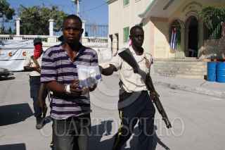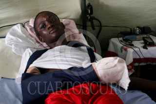 PUERTO PRÍNCIPE, HAITI, 26ENERO2009.- Una persona fue detenida dentro de un hospital, acusada de pillaje. La persona estaba siendo atendida por heridas supuestamente provocadas por el sismo del pasado martes. FOTO: ISAAC ESQUIVEL/CUARTOSCURO.COM