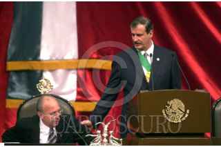Vicente Fox se despide de diputados en San Lázaro luego de su tercer informe, en él admitió rezagos que pueden sacarse adelante con una "coalición". FOTO: Juan Pablo Zamora/CUARTOSCURO.COM