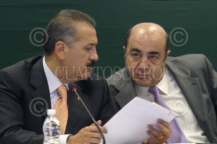 MÉXICO, D.F., 28ENERO2010.- Los senadores Carlos Jimenez Macias y Mario Lopez Valdez durante una conferencia de prensa por motivo de la II Reunión Plenaria del grupo parlamentario del PRI que se realizo en la torre caballito del Senado de la República. FOTO: RODOLFO ANGULO/CUARTOSCURO.COM
