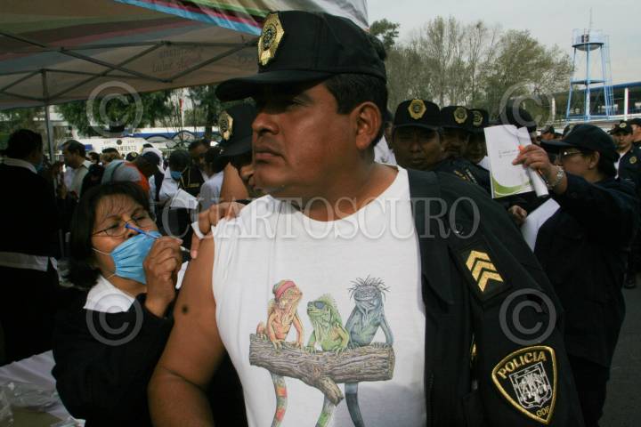 MÉXICO, D.F., 28ENERO2010.- Enfermeras realizan la vacunación contra el virus de la influenza A H1N1 a elementos de Seguridad Pública. FOTO: ENRIQUE ORDOÑEZ/CUARTOSCURO.COM