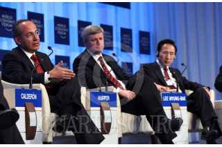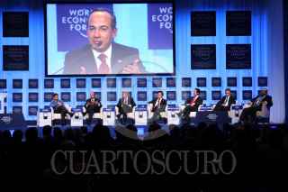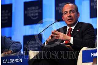 DAVOS, SUIZA, 28ENERO2010.- Felipe Calderón Hinojosa, Presidente de México, durante su reunión con José Luis Rodríguez Zapatero, Presidente de España, como parte del Foro Económico Mundial. Este se llevó acabo en la sala M18 del centro de congresos. FOTO: ALFREDO GUERRERO/CUARTOSCURO.COM