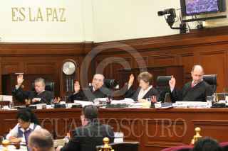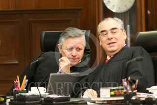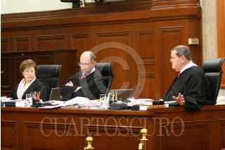 MÉXICO D.F., 28ENERO2010.- Los ministros Arturo Zaldívar Lelo de Larrea, José Fernando Franciso González, Margarita Beatriz Luna Ramos, José Ramón Cossio Díaz y Sergio Salvador Aguirre Anguiano durante la sesión en la Suprema Corte de Justicia de la Nación (SCJN)) donde se le da seguimiento a la controversia constitucional sobre el Impuesto Empresarial de Tasa Única (IETU). FOTO: GUILLERMO PEREA/CUARTOSCURO.COM