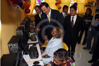 MÉXICO, D.F., 28ENERO2010.- Marcelo Ebrard Casaubon, Jefe de Gobierno del Distrito Federal, inauguró esta mañana un Cibercentro en la delegación Venustiano Carranza. FOTO: CUARTOSCURO.COM