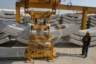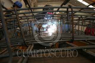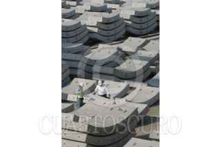 RÍO DE LOS REMEDIOS, ESTADO DE MÉXICO 29ENERO2010.- Las dovelas son las piezas que revestirán el Túnel Emisor Oriente, un anillo de este lo conforman 7 piezas y media, además de que al finalizar la obra se le cubrirá con acero, por ser piezas exclusivas se construyeron tres plantas especializadas en su fabricación. En ella se arma la estructura a base de varilla, para luego meterlas en unos moldes en donde se vacía el concreto, luego se somete a revisiones de calidad. FOTO: MOISÉS PABLO/CUARTOSCURO.COM