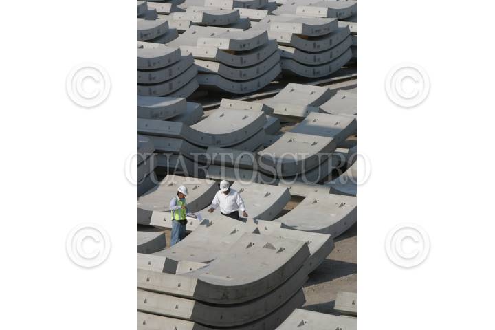 RÍO DE LOS REMEDIOS, ESTADO DE MÉXICO 29ENERO2010.- Las dovelas son las piezas que revestirán el Túnel Emisor Oriente, un anillo de este lo conforman 7 piezas y media, además de que al finalizar la obra se le cubrirá con acero, por ser piezas exclusivas se construyeron tres plantas especializadas en su fabricación. En ella se arma la estructura a base de varilla, para luego meterlas en unos moldes en donde se vacía el concreto, luego se somete a revisiones de calidad. FOTO: MOISÉS PABLO/CUARTOSCURO.COM