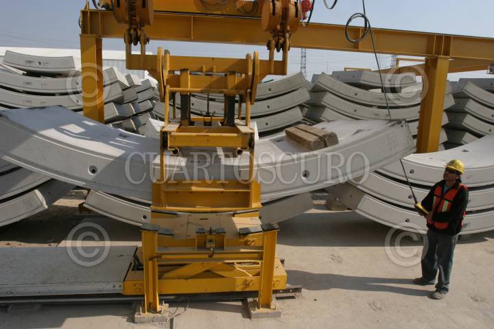 RÍO DE LOS REMEDIOS, ESTADO DE MÉXICO 29ENERO2010.- Las dovelas son las piezas que revestirán el Túnel Emisor Oriente, un anillo de este lo conforman 7 piezas y media, además de que al finalizar la obra se le cubrirá con acero, por ser piezas exclusivas se construyeron tres plantas especializadas en su fabricación. En ella se arma la estructura a base de varilla, para luego meterlas en unos moldes en donde se vacía el concreto, luego se somete a revisiones de calidad. FOTO: MOISÉS PABLO/CUARTOSCURO.COM