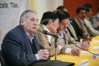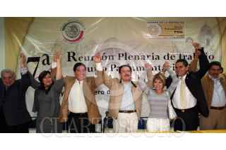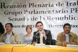 TLAXCALA, TLAXCALA, 29ENERO2010.- Carlos Navarrte Ruíz, Minerva Hernández y Silvano Aureoles, durante la conclución de los trabajos de la "VII Reunión Plenaria" del Grupo Parlamentario del PRD. Los senadores informaron que dentro de su agenda legislativa impulsarán las medidas necesarias para transformar de fondo el régimen político mexicano. FOTO: CUARTOSCURO.COM