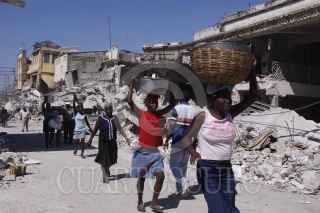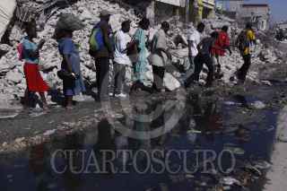 PUERTO PRINCIPE, HAITÍ, 29ENERO2010.- Haitianos caminan por las calles de centro luego de que un terremoto de 7.2 grados en la escala de richter devastó a la ciudad. FOTO: IVÁN STEPHENS/CUARTOSCURO.COM