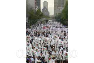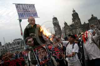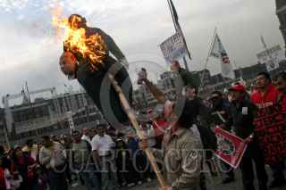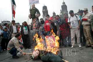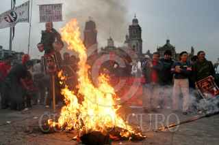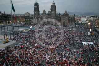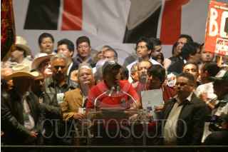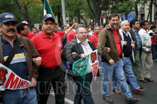 MÉXICO, D.F., 29ENERO2010.- Martin Esparza, líder del Sindicato Mexicano de Electricistas (SME) durante su participación en el mitin que se realizo en el Zócalo al termino de la marcha que partió del Ángel de la Independencia como protesta a las políticas económicas y sociales del gobierno las cuales han generado desempleo y pobreza y el incremento de precios a productos básicos y combustibles. FOTO: RODOLFO ANGULO/CUARTOSCURO.COM