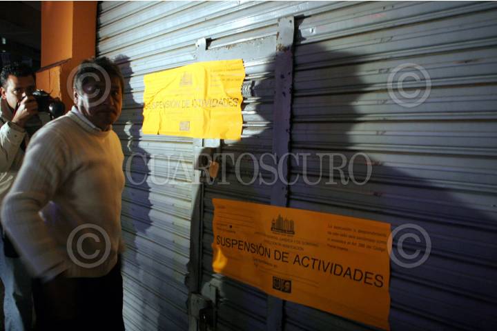 MÉXICO, D.F., 30ENERO2010.- Autoridades delegacionales clausuraron diferentes comercios esta madrugada durante un operativo de verificación en establecimientos mercantiles del Distrito Federal. En la imagen, un verificador de la delegación Cuauhtémoc coloca los sellos de suspensión de actividades en el bar "Drakman", ubicado en la calle de medellin y Yucatan en la colonia Roma. FOTO: LUZ ACEVEDO/CUARTOSCURO.COM