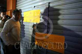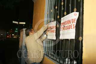 MÉXICO, D.F., 30ENERO2010.- Autoridades delegacionales clausuraron diferentes comercios esta madrugada durante un operativo de verificación en establecimientos mercantiles del Distrito Federal. En la imagen, un verificador de la delegación Cuauhtémoc coloca los sellos de suspensión de actividades en el bar "Drakman", ubicado en la calle de medellin y Yucatan en la colonia Roma. FOTO: LUZ ACEVEDO/CUARTOSCURO.COM