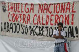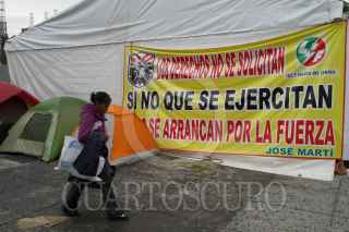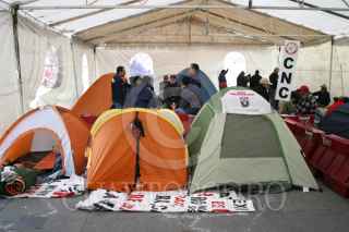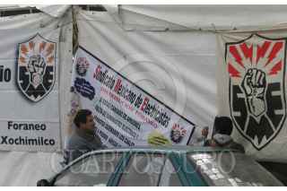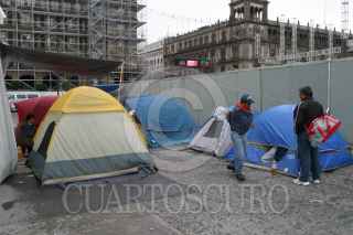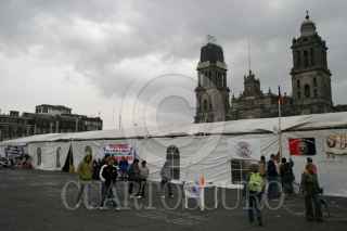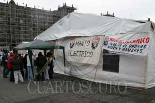 MÉXICO, D.F., 30ENERO2010.- Desde la noche de ayer integrantes del Sindicato Mexicano de Electricistas (SME) y de la extinta Luz y Fuerza del Centro (LyFC) montaron un plantón permanente en la plancha del Zócalo hasta tener respuesta por parte del gobierno federal en torno a las demandas obrero-campesinas. FOTO: RODOLFO ANGULO/CUARTOSCURO.COM