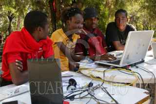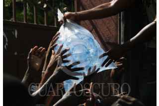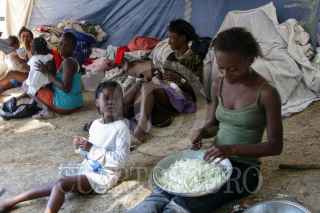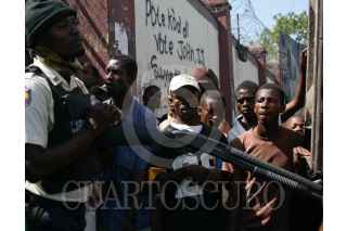 CARREFOUR, HAITI, 30ENERO2010.- Decenas de personas esperan conseguir un poco de agua durante un descargo del vital líquido en Carrefour, zona metropolitana de Puerto Príncipe. Miles de haitianos están desesperados debido a que no tienen agua, alimento y medicinas. FOTO: ISAAC ESQUIVEL/CUARTOSCURO.COM