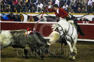 PUEBLA, PUEBLA, 30ENERO2010.- El famoso rejoneador, Pablo Hermoso de Mendoza, ofreció una exitosa faena taurina en la que mató a dos toros de la ganadería José María Arturo Huerta en la plaza el Relicario. FOTO: FRANCISCO GUASCO/CUARTOSCURO.COM