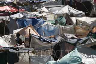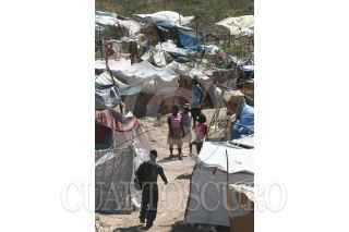 TABAR, HAITI., 31ENERO2010.- Personas de Puerto Principe y zona conurbada, han optado en salir de la ciudad e improvisar campamentos de palos y plastico como hogar debido al temor de que en la capital se sigan derrumbando mas edificios. FOTO: SAUL LOPEZ/CUARTOSCURO.COM